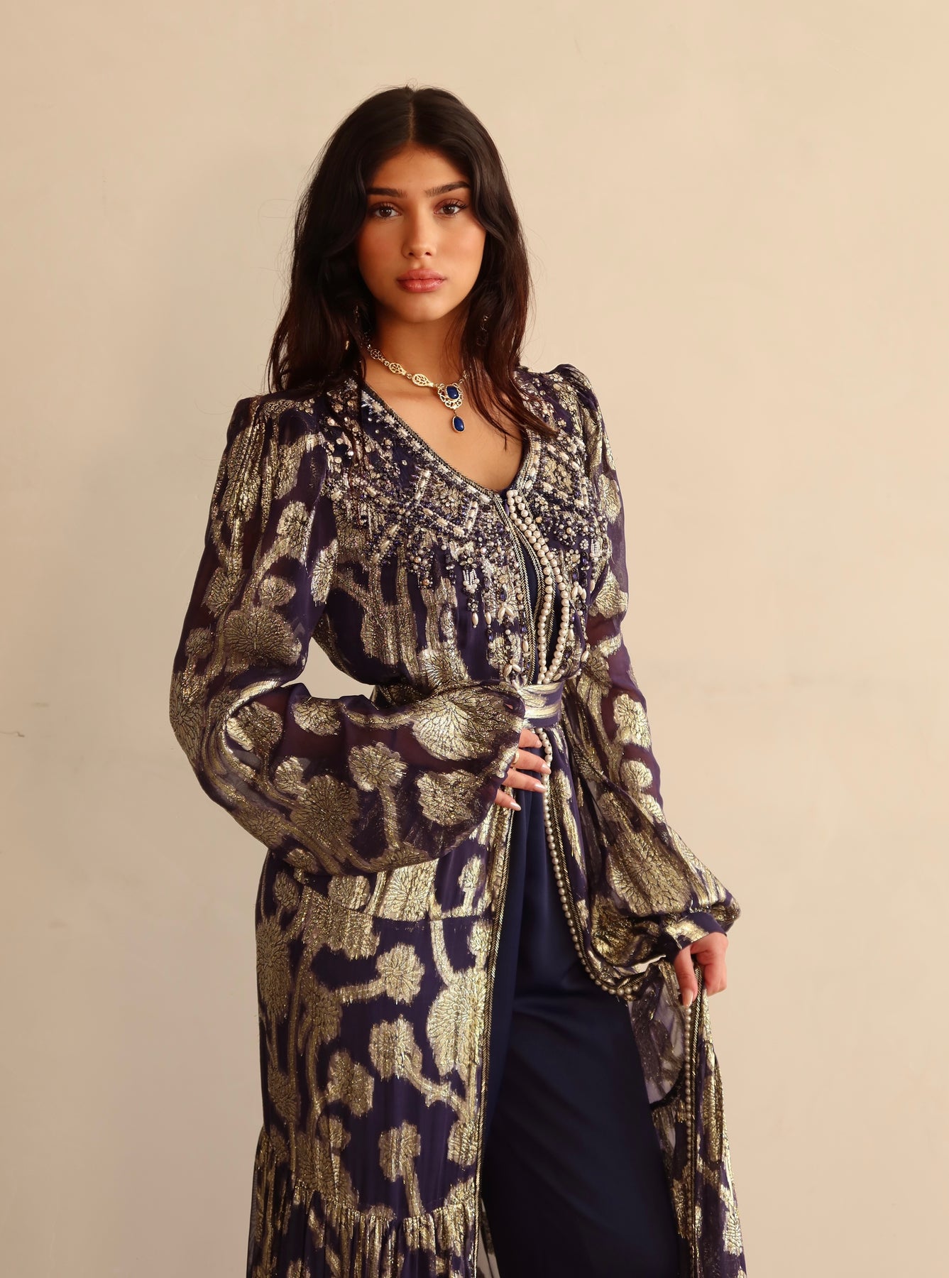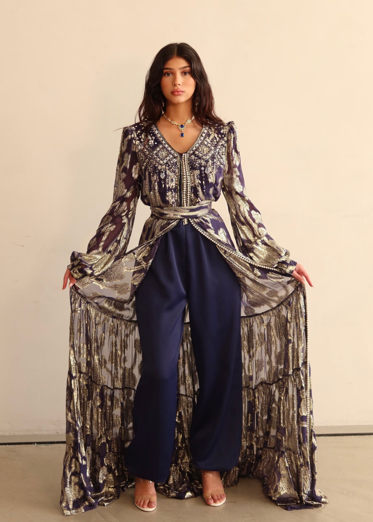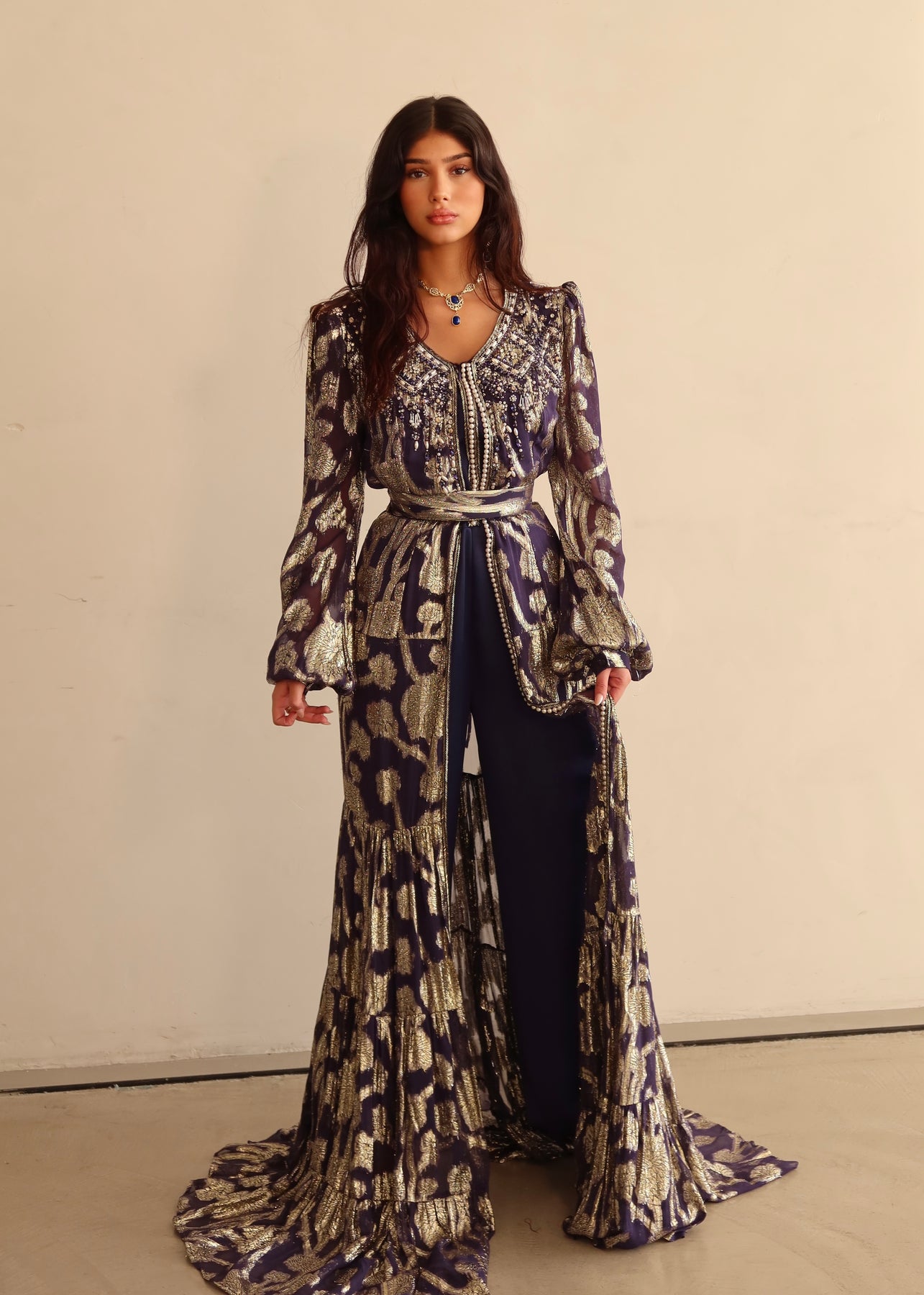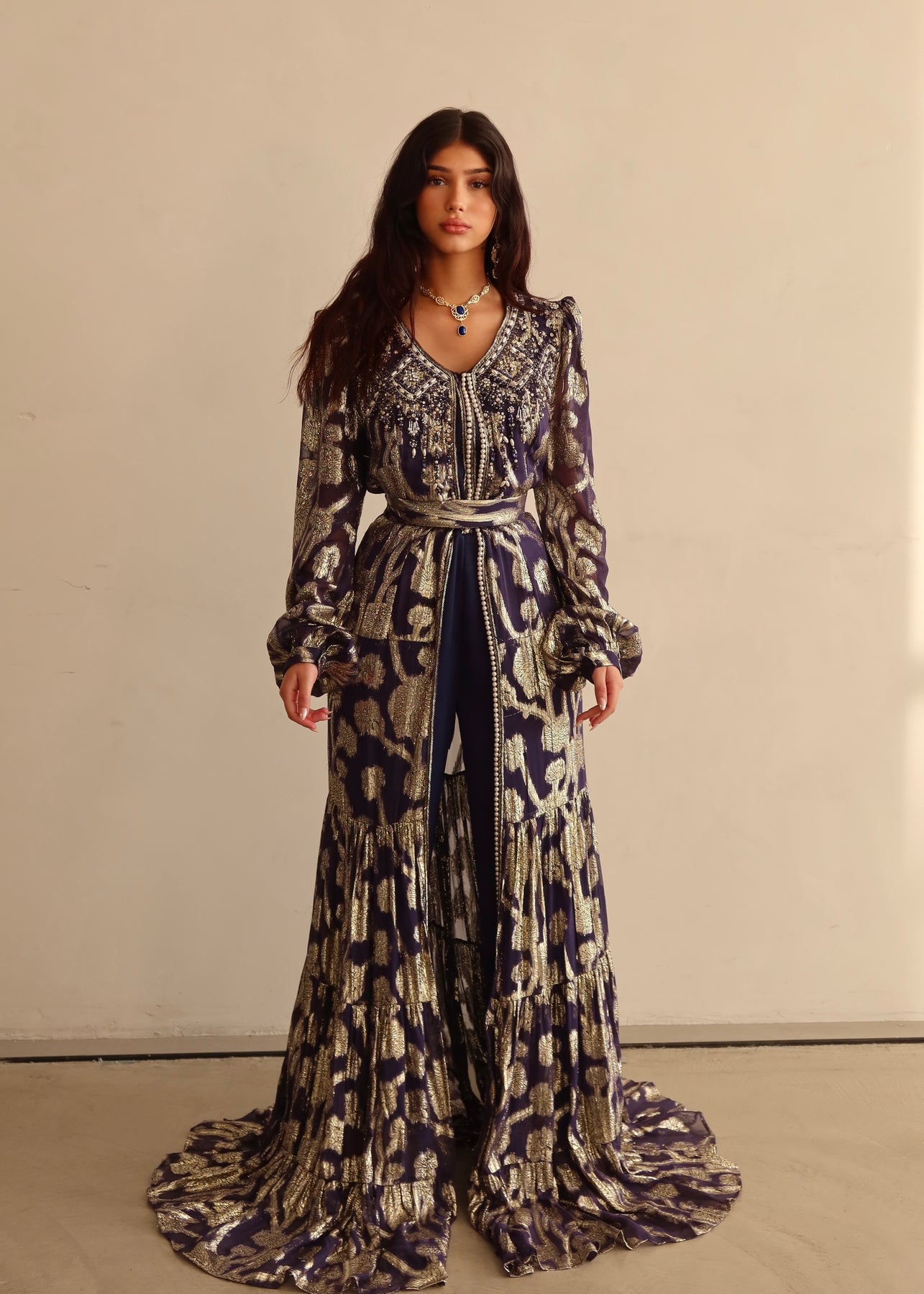 Diese Couture-Kleider entstehen aus extrem leichtem, hochwertigem 60-Gramm-Georgette Tlija. Die Designs setzen auf ausdrucksstarke Kontraste und sind vollständig von Hand mit Kristallsteinen veredelt. In echter Haute-Couture-Tradition werden die Schnitte dreidimensional direkt auf der Schneiderpuppe drapiert – nicht flach auf dem Tisch.
