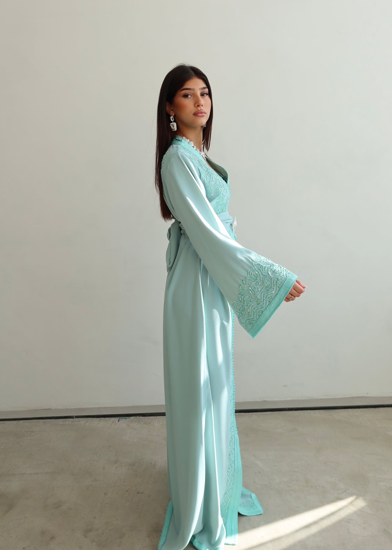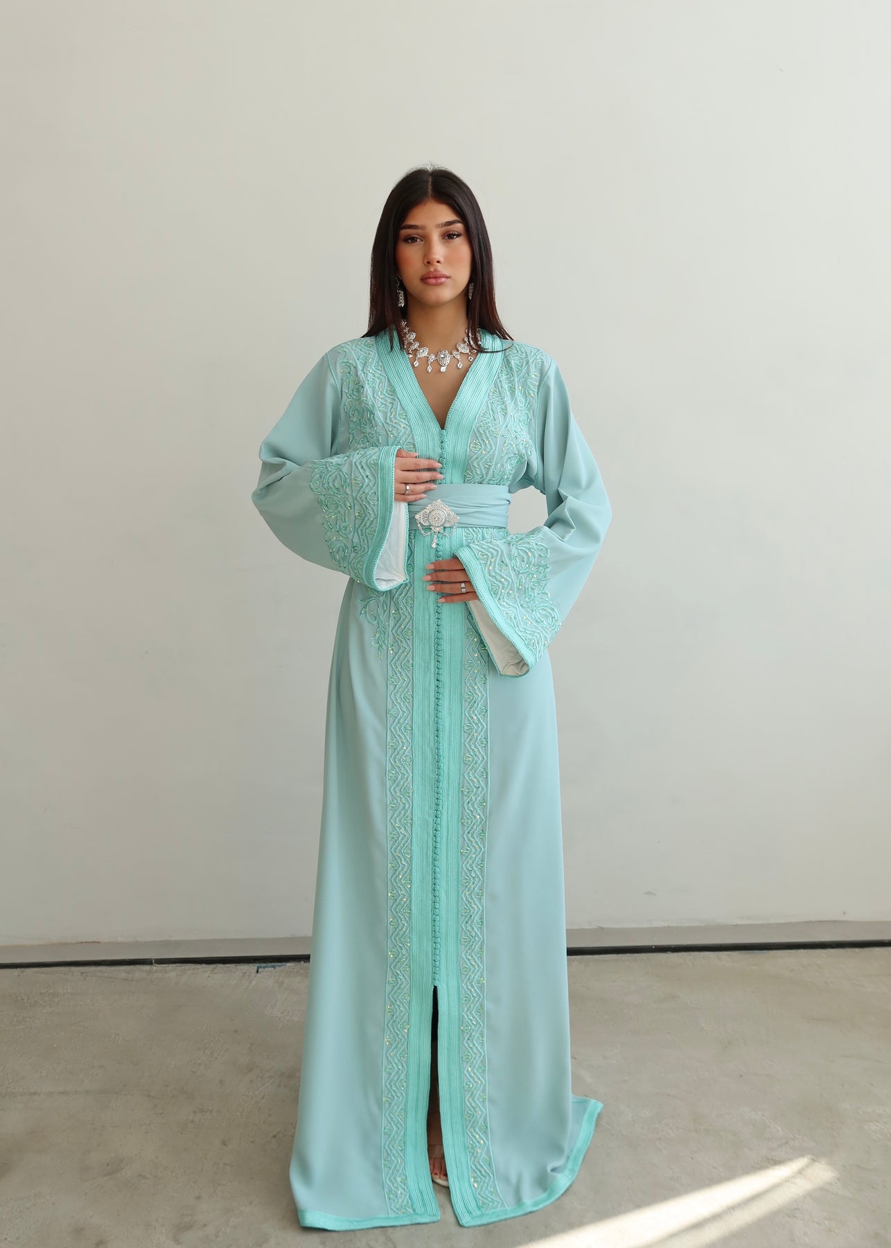 Kaftan Aya - Der wunderschön bestickte Kaftan besticht durch ein edles Ton-in-Ton-Design, das zeitlose Raffinesse ausstrahlt.