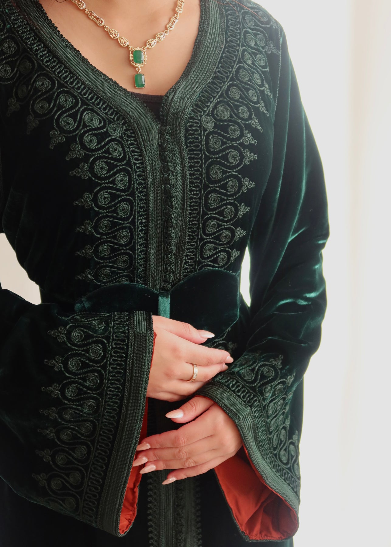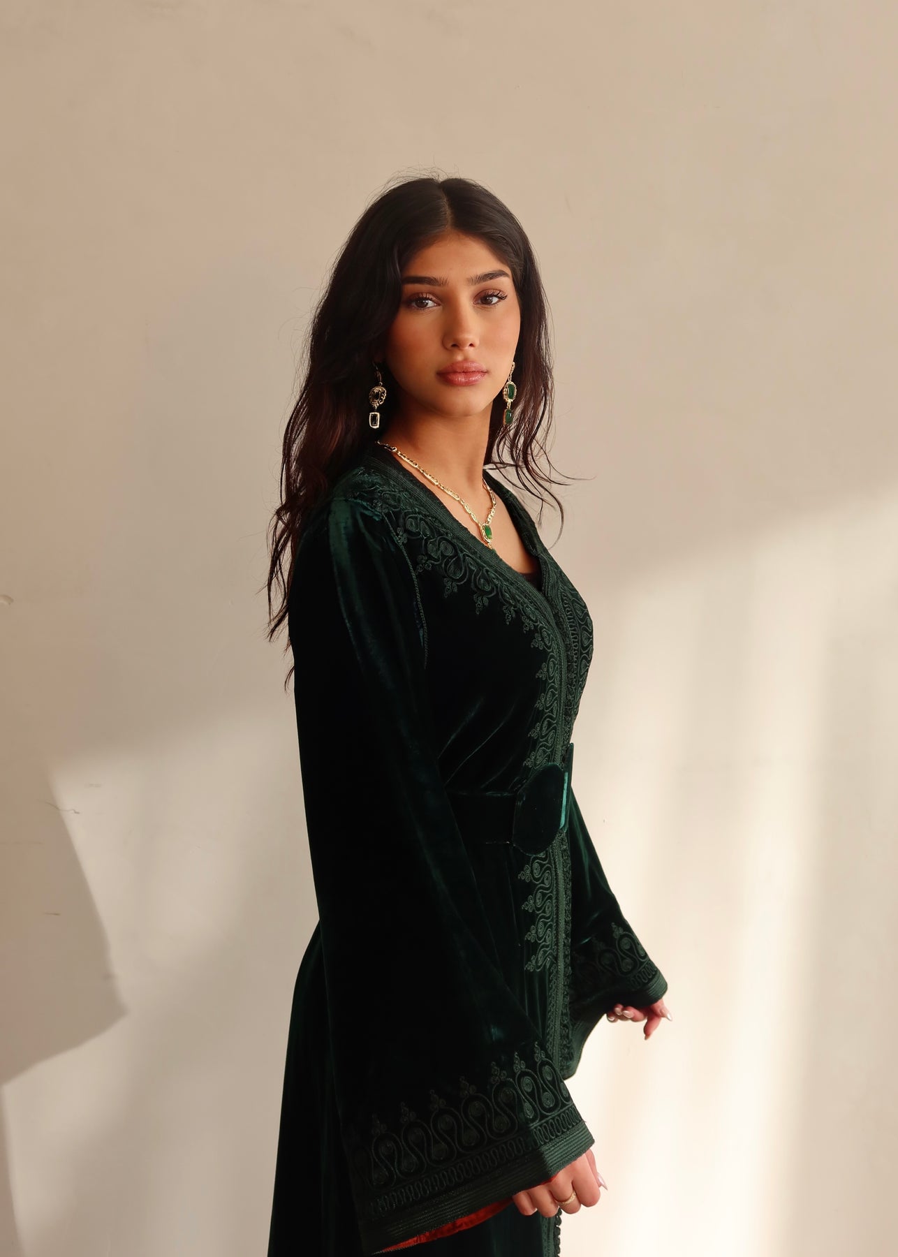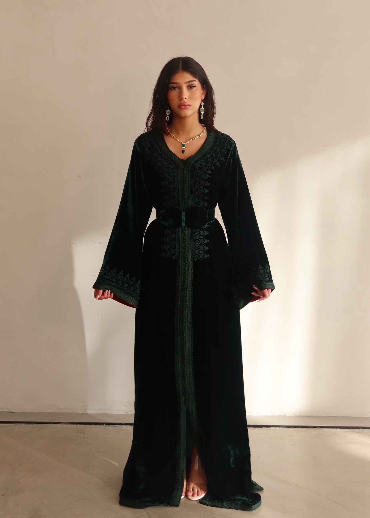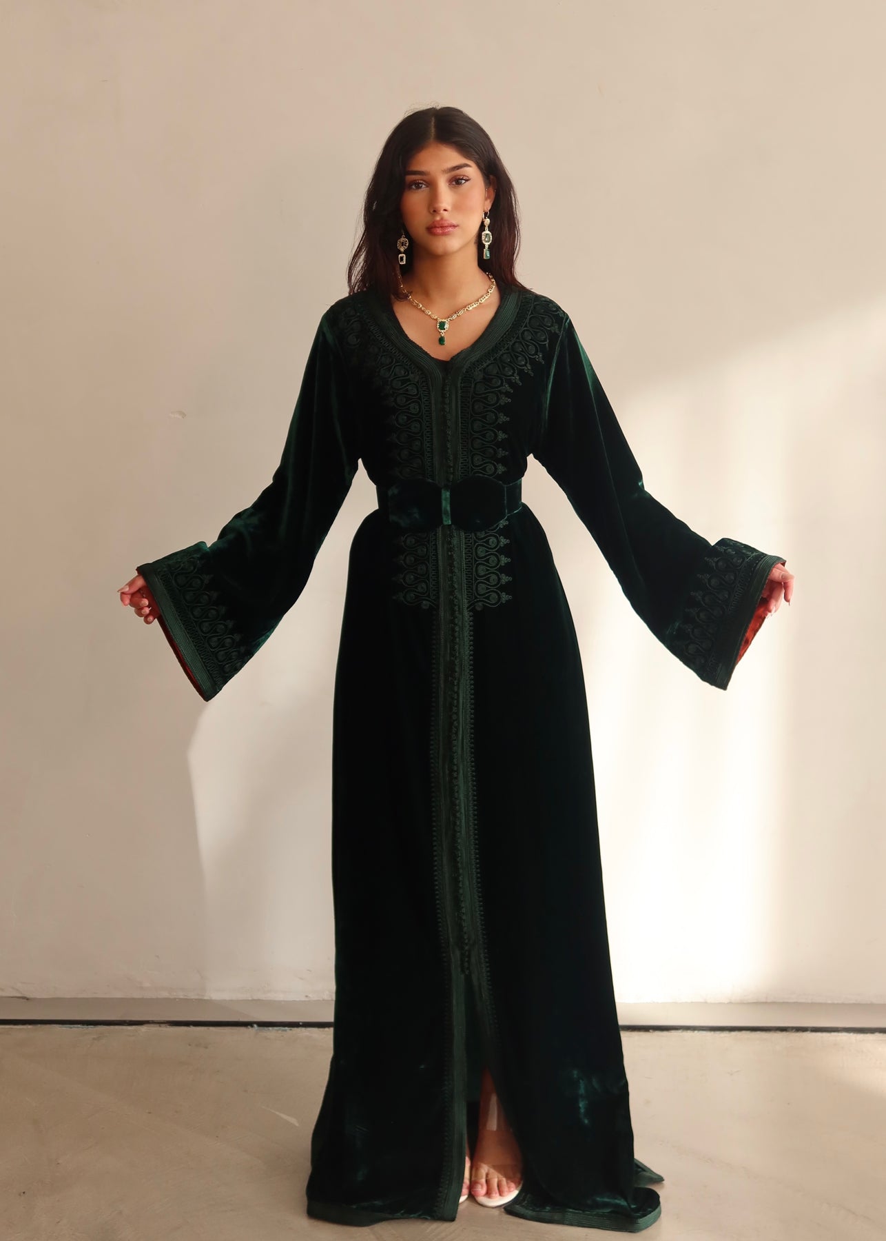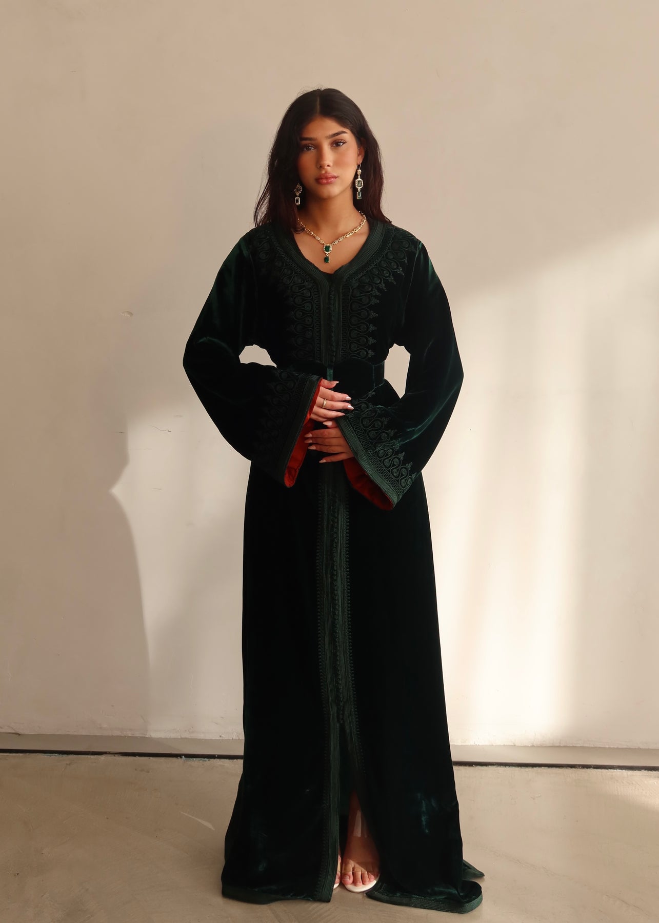 Weicher Samt, feine Stickerei & dezenter Glanz – der Velvet Kaftan ist dein Go-to für stilvolle Auftritte. Locker geschnitten, bequem & super kombinierbar.
